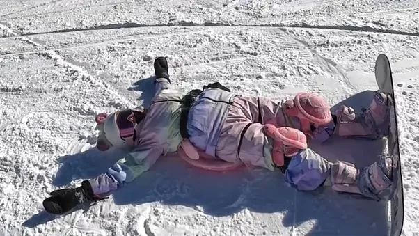 在短短秒视频中,她剪辑了自己多次摔倒又爬起的滑雪画面。
